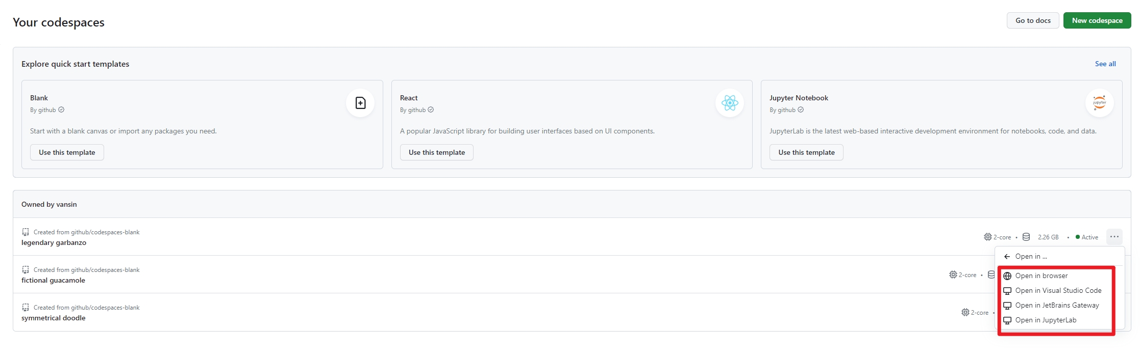 访问 https://github.com/codespaces ,选择 Github 提供的 Blank 模板。我们可以在这个服务器上看源码或者 Debug。