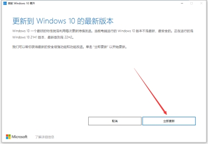 点击立即更新,会下载一个微软软件,按照提示更新即可,装完需要重启,网速快的话整个过程大约一个小时。(请确保您的网络能够正常访问)。