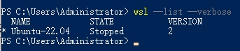 将 WSL2 设置为默认版本,在 powershell 中输入下面指令: