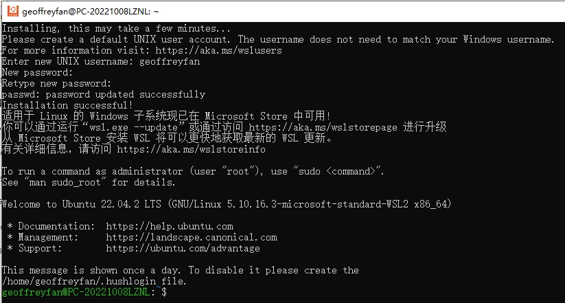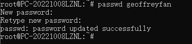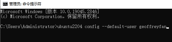ubuntu2204 config --default-user geoffreyfan(这里填写你自己的用户名字)