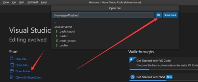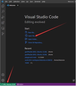 打开 Ubuntu-22.04 Linux 子系统里面的文件:open Folder , 点击 OK :