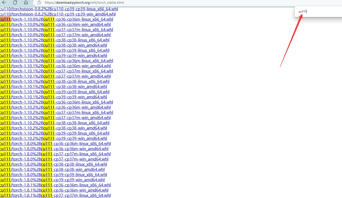 下载 cu111 版本(注意, Win10 系统上的显卡驱动的版本可以不用与这里的 cuda 版本一致,比如我下载的 Win10 系统上的显卡驱动版本为 12.1 ,显卡驱动是向下兼容的):