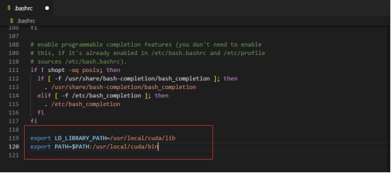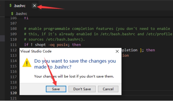 在 .bashrc 文件中添加下面两条代码指令,并保存:
