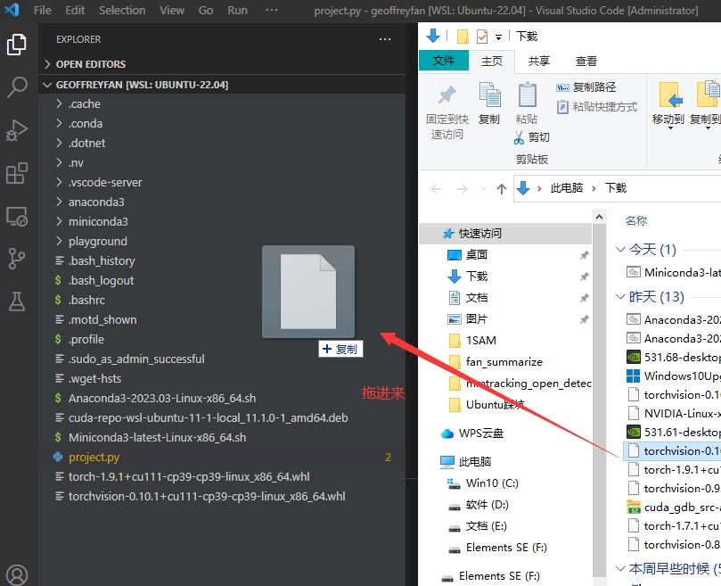 浏览器下载下完后,拖入到 Ubuntu-22.04 Linux 子系统里面: