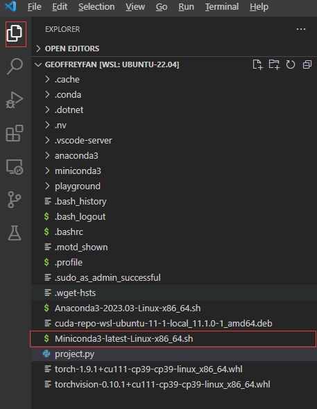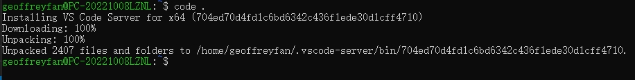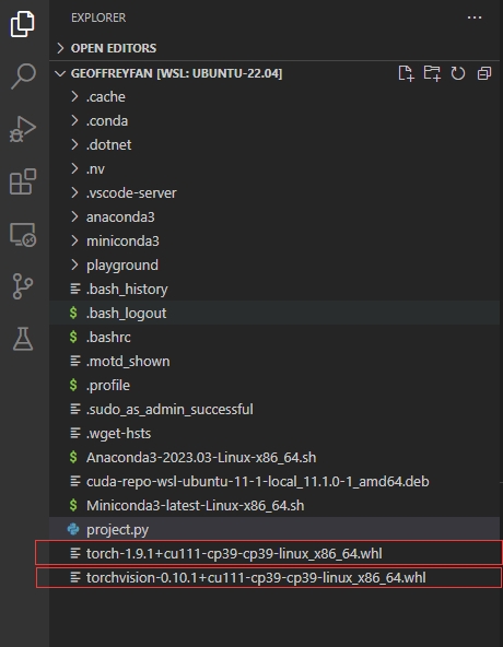 上传完之后,Ubuntu-22.04 Linux 子系统的 /home/geoffreyfan (这里是你自己的用户名字) / 路径下的文件中会有两个相应的安装包: