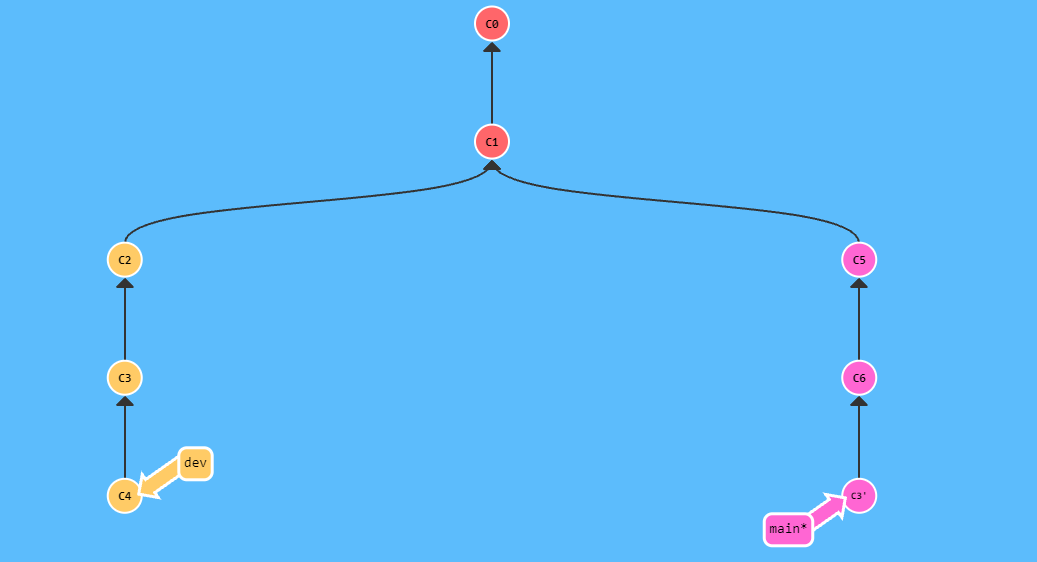 $ git checkout dev && git rebase main