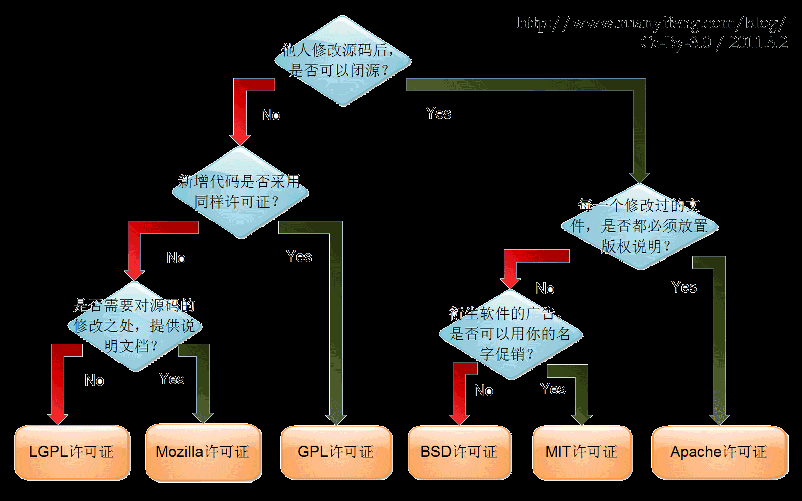 目前,国际公认的开源许可证共有80多种。它们的共同特征是,都允许用户免费地使用、修改、共享源码,但是都有各自的使用条件。但如果一种开源许可证没有任何使用条件,连保留作者信息都不需要,那么就等同于放弃版权了。这时,软件可以直接声明进入"公共领域"(public domain)。